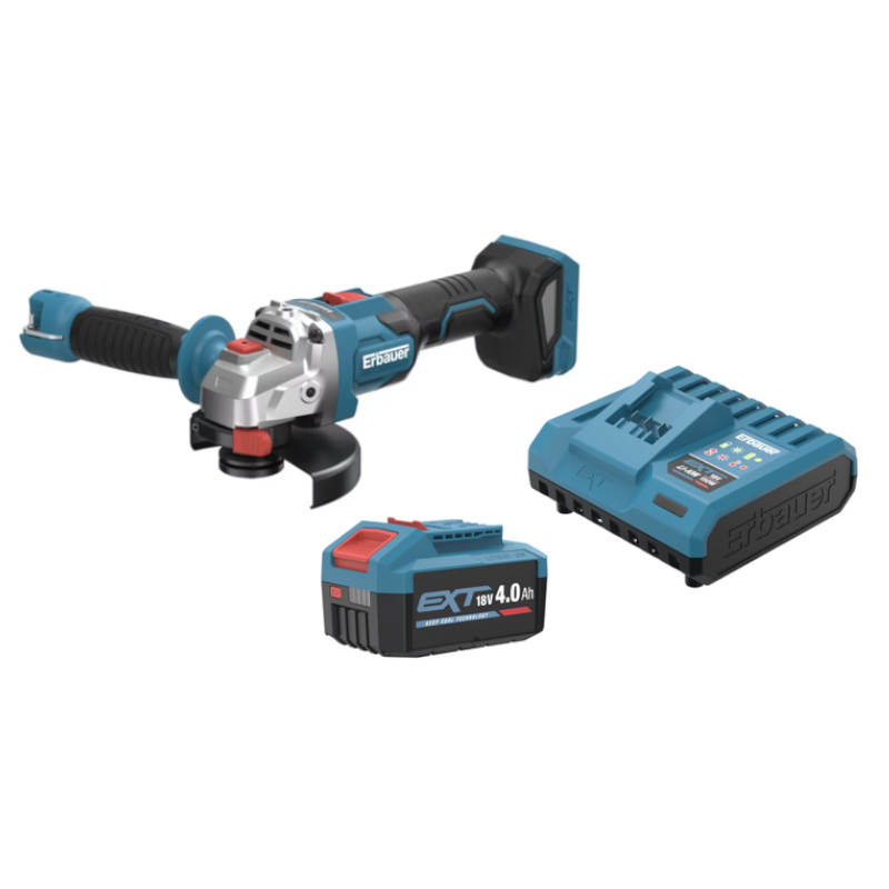 Bezprzewodowa konstrukcja zapewnia pełną swobodę ruchów podczas pracy zarówno w warsztacie, jak i na placu budowy. Wydajny silnik bezszczotkowy V2 oferuje nawet o 20% większą moc, co przekłada się na szybsze i skuteczniejsze szlifowanie oraz cięcie. System błyskawicznej wymiany osłon pozwala sprawnie dostosować narzędzie do aktualnych potrzeb, a 3-pozycyjny uchwyt boczny umożliwia precyzyjną kontrolę w każdych warunkach. Ergonomiczny uchwyt typu soft grip zwiększa komfort nawet przy dłuższej pracy. Elektroniczne sterowanie oraz funkcje łagodnego rozruchu i zabezpieczenia przed przeciążeniem podnoszą bezpieczeństwo użytkowania. Szlifierka kątowa Erbauer G2 125 mm 18 V 1 x 4,0 Ah jest wyposażona w akumulator litowo-jonowy o pojemności 4,0 Ah z technologią EXT Keep Cool oraz szybkie ładowanie w zaledwie 0,85 godziny. Solidna obudowa z aluminium i nylonu zapewnia trwałość, a blokada wrzeciona ułatwia wymianę tarcz o średnicy do 125 mm. Produkt spełnia normy CE i UKCA, co potwierdza jego wysoką jakość i bezpieczeństwo użytkowania.