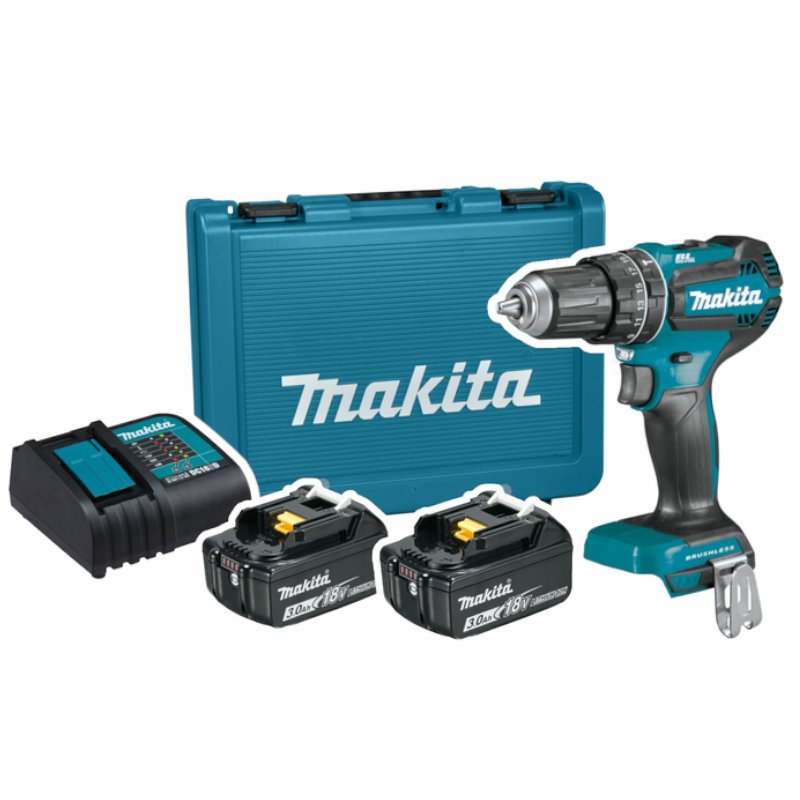 Zaawansowana technologicznie wiertarko-wkrętarka udarowa Makita DHP485SFE 18V LXT sprawdzi się doskonale zarówno podczas prac remontowych, jak i w codziennych zadaniach warsztatowych. Bezszczotkowy silnik zapewnia wysoką wydajność oraz dłuższą żywotność urządzenia, a dwa biegi i aż 21 ustawień momentu obrotowego pozwalają na precyzyjne dopasowanie mocy do rodzaju materiału. Praktyczne podwójne lampy LED gwarantują doskonałą widoczność w miejscach o ograniczonym dostępie do światła. Zestaw obejmuje dwa akumulatory litowo-jonowe o pojemności 3 Ah, co zapewnia nieprzerwaną pracę nawet przy intensywnym użytkowaniu. Model ten wyposażono w funkcję udaru, dzięki czemu wiercenie w twardych materiałach przebiega szybko i sprawnie. Ergonomiczna konstrukcja oraz intuicyjna obsługa sprawiają, że narzędzie jest wygodne w użytkowaniu zarówno przez profesjonalistów, jak i majsterkowiczów. Walizka transportowa ułatwia przechowywanie i przenoszenie sprzętu. Maksymalna średnica wiercenia w drewnie wynosi 38 mm, a uchwyt wiertarski pozwala na zastosowanie wierteł do 13 mm. Wentylatorowe chłodzenie chroni silnik przed przegrzaniem, zwiększając trwałość urządzenia.