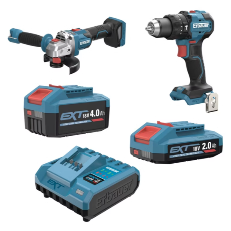 Praktyczny zestaw elektronarzędzi akumulatorowych pozwala na swobodne wykonywanie różnorodnych prac montażowych i remontowych bez ograniczeń przewodem. W skład kompletu wchodzi wydajna wiertarko-wkrętarka oraz szlifierka kątowa o średnicy 125 mm, które sprawdzą się zarówno podczas wiercenia, wkręcania, jak i obróbki metalu czy cięcia elementów. Nowoczesny silnik bezszczotkowy zastosowany w obu urządzeniach gwarantuje dłuższą żywotność i wysoką efektywność pracy. Kompaktowe rozmiary wiertarki ułatwiają dostęp do trudno dostępnych miejsc, a szlifierka wyposażona jest w regulowaną osłonę, którą można ustawić bez użycia dodatkowych narzędzi. Zestaw Erbauer 18V 2/4Ah zawiera dwa akumulatory litowo-jonowe w technologii EXT oraz ładowarkę ze wskaźnikiem naładowania, co pozwala na nieprzerwaną pracę nawet przy większych projektach. Całość utrzymana jest w solidnej, ergonomicznej formie i nowoczesnej kolorystyce. To doskonałe rozwiązanie dla majsterkowiczów oraz profesjonalistów ceniących mobilność i niezawodność narzędzi.